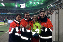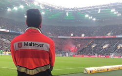 Für die Malteser ein Sanitätsdienst der trotz viel Pyrotechnik im Stadion durch einige der…